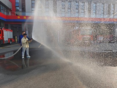 活動中,學(xué)生沉浸式體驗消防生活,零距離感受“火焰藍(lán)”的魅力。消防戰(zhàn)士帶領(lǐng)同學(xué)們依次參觀了消防隊的工作區(qū)、訓(xùn)練區(qū)、生活區(qū)、學(xué)習(xí)區(qū)。介紹了滅火器、救生照明燈、切割機,液壓頂桿、消防機器人等消防專用器械的功能、使用方法,并向同學(xué)們展示了高樓攀登速降、四米高空救援的過程。體驗的同學(xué)紛紛表示,今天厚重的消防救援服被穿在身上、高壓水槍的壓力打到身上,才真切感受到消防員的偉大。在活動過程中,應(yīng)急管理專業(yè)同學(xué)老師還與消防員們溝通交流,了解應(yīng)急專業(yè)學(xué)生的就業(yè)前景,以及技術(shù)防控在應(yīng)急管理工作上的應(yīng)用等。