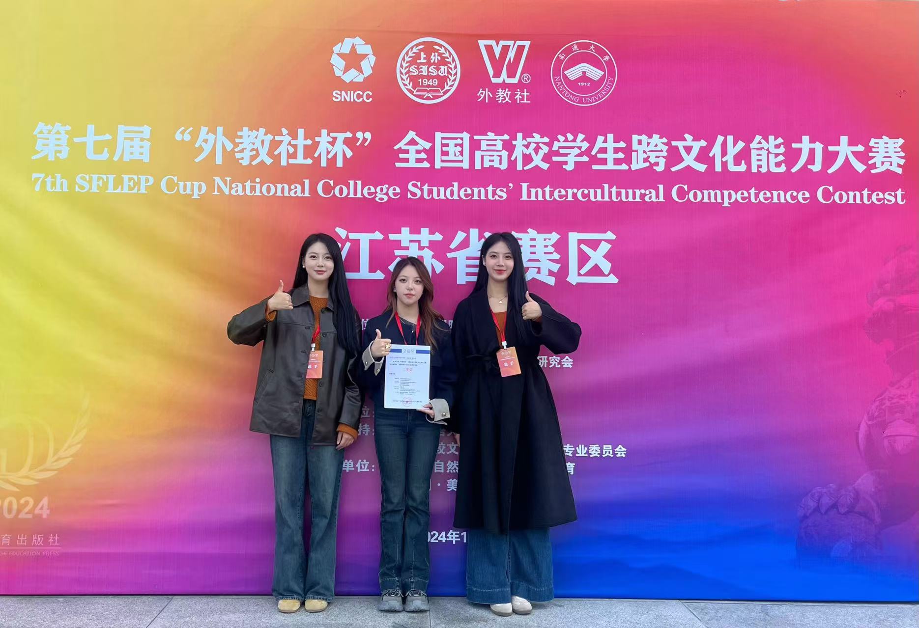 11月1日至3日,我院單思雯、李姝漪、李姝穎三位同學(xué)在第七屆“外教社杯”全國高校學(xué)生跨文化能力大賽江蘇賽區(qū)的激烈角逐中,憑借出色的表現(xiàn)榮獲二等獎(jiǎng),為學(xué)院爭得了榮譽(yù)。此次大賽旨在提升高校學(xué)生的跨文化能力,促進(jìn)多元文化交流與理解。我院參賽學(xué)子經(jīng)過精心準(zhǔn)備和不懈努力,在比賽中展現(xiàn)出了扎實(shí)的知識功底、敏銳的文化洞察力和優(yōu)秀的團(tuán)隊(duì)協(xié)作能力。她們優(yōu)異的表現(xiàn)彰顯了我院學(xué)子積極進(jìn)取、勇于挑戰(zhàn)的精神風(fēng)貌。(外語系 陳佳/文)
