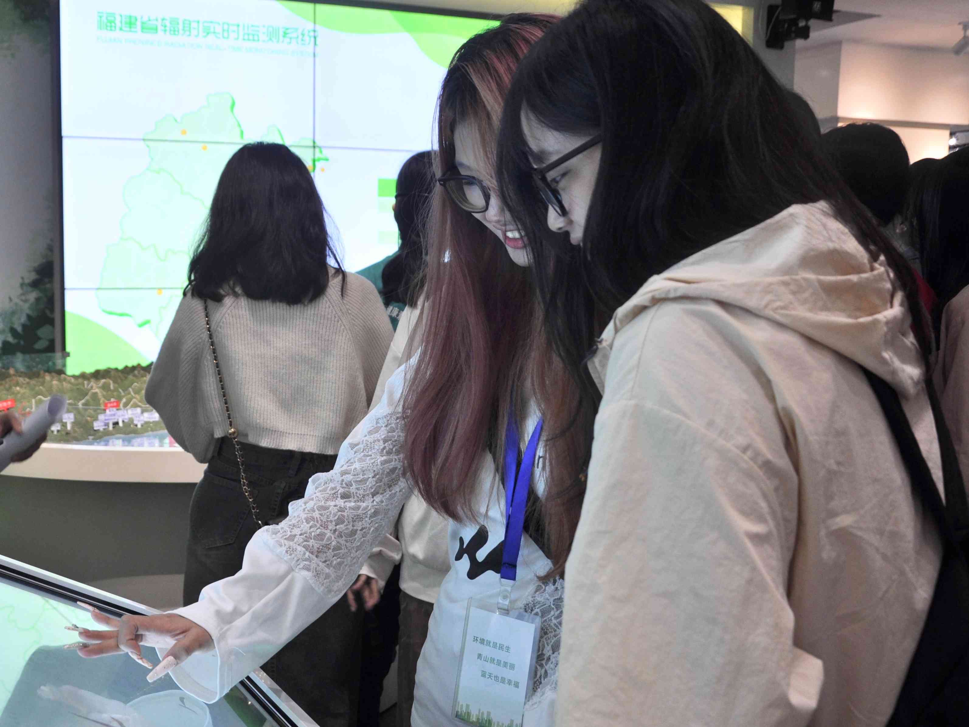 活動現場,講解員通過展示福建省輻射實時監測系統為支部成員詳細介紹福建省核能資源及其發展現狀,帶領同學們了解輻射的相關概念,著重強調核電站發電原理、選址建造以及核應急事故管理的相關知識。