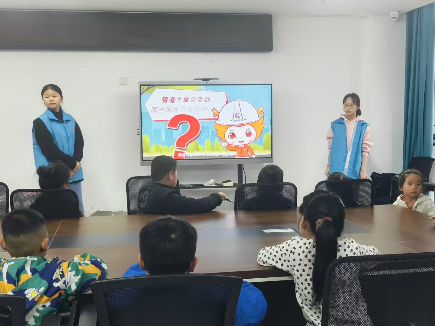 圖為志愿者和小朋友們一起討論管道會(huì)受到哪些地質(zhì)災(zāi)害的影響 劉思雨攝