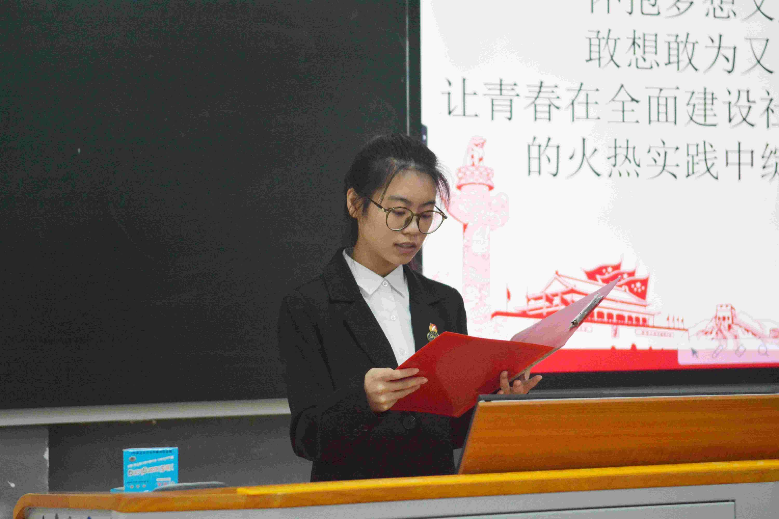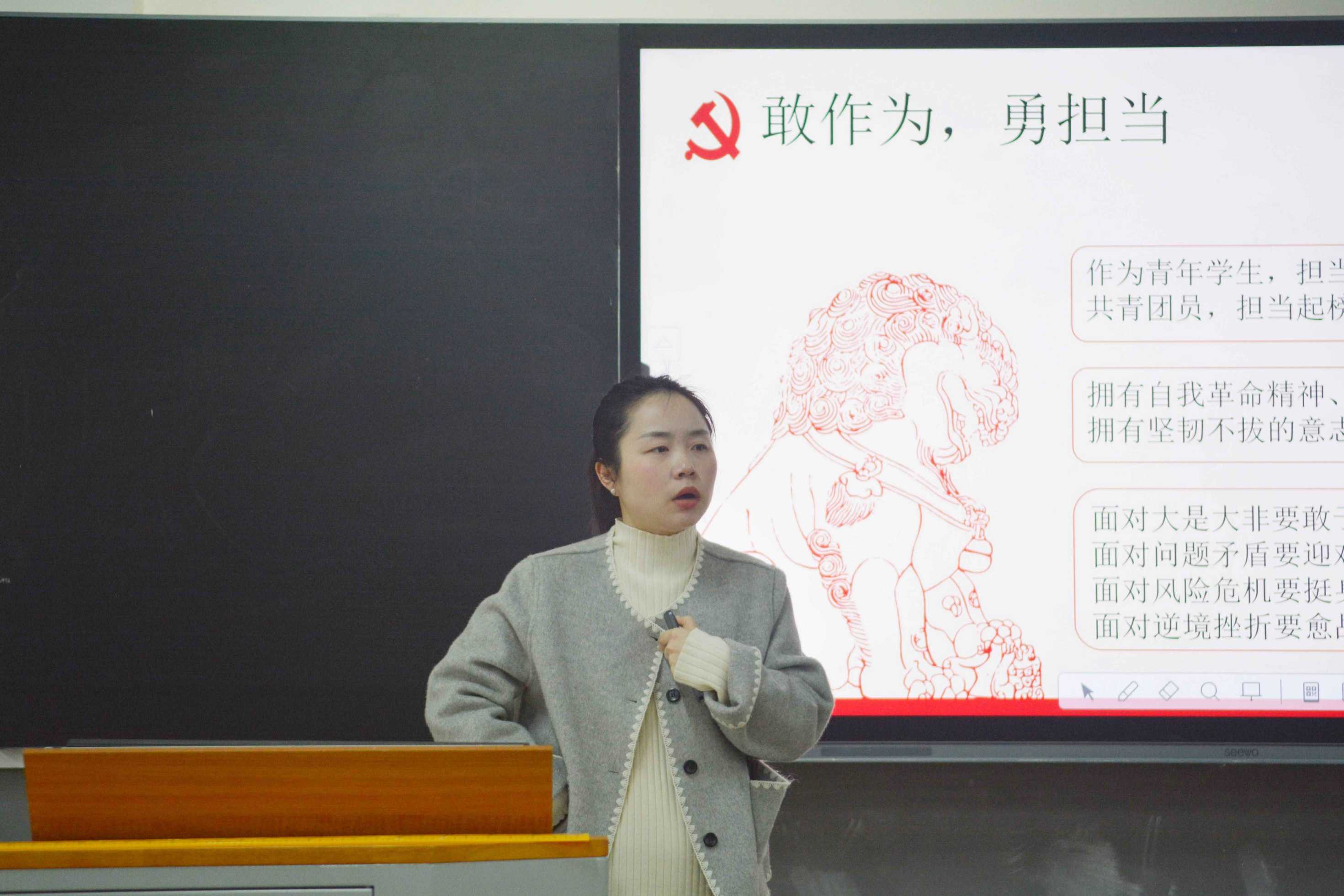 劉浩月從當(dāng)前社會(huì)的社會(huì)環(huán)境出發(fā),就當(dāng)代青年學(xué)生如何成就自我的問題進(jìn)行了講解。她從加強(qiáng)思想政治學(xué)習(xí)教育、如何加強(qiáng)思想政治教育、加強(qiáng)理論知識(shí)、加強(qiáng)專業(yè)專項(xiàng)技能學(xué)習(xí)四個(gè)方面進(jìn)行闡述。她表示,成就自我應(yīng)多面拓展自身學(xué)習(xí),當(dāng)代青年要敢作為敢擔(dān)當(dāng),充分了解新時(shí)代共青團(tuán)員的內(nèi)涵,擔(dān)當(dāng)起榜樣先鋒作用。