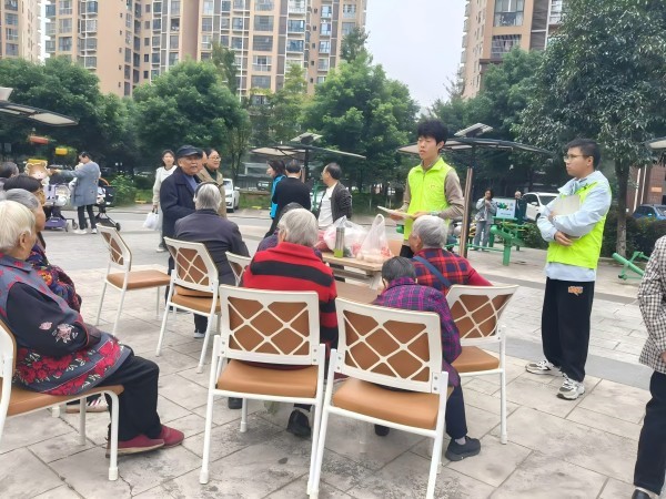 社區(qū)老人向志愿者咨詢?nèi)細(xì)獍踩珕栴}