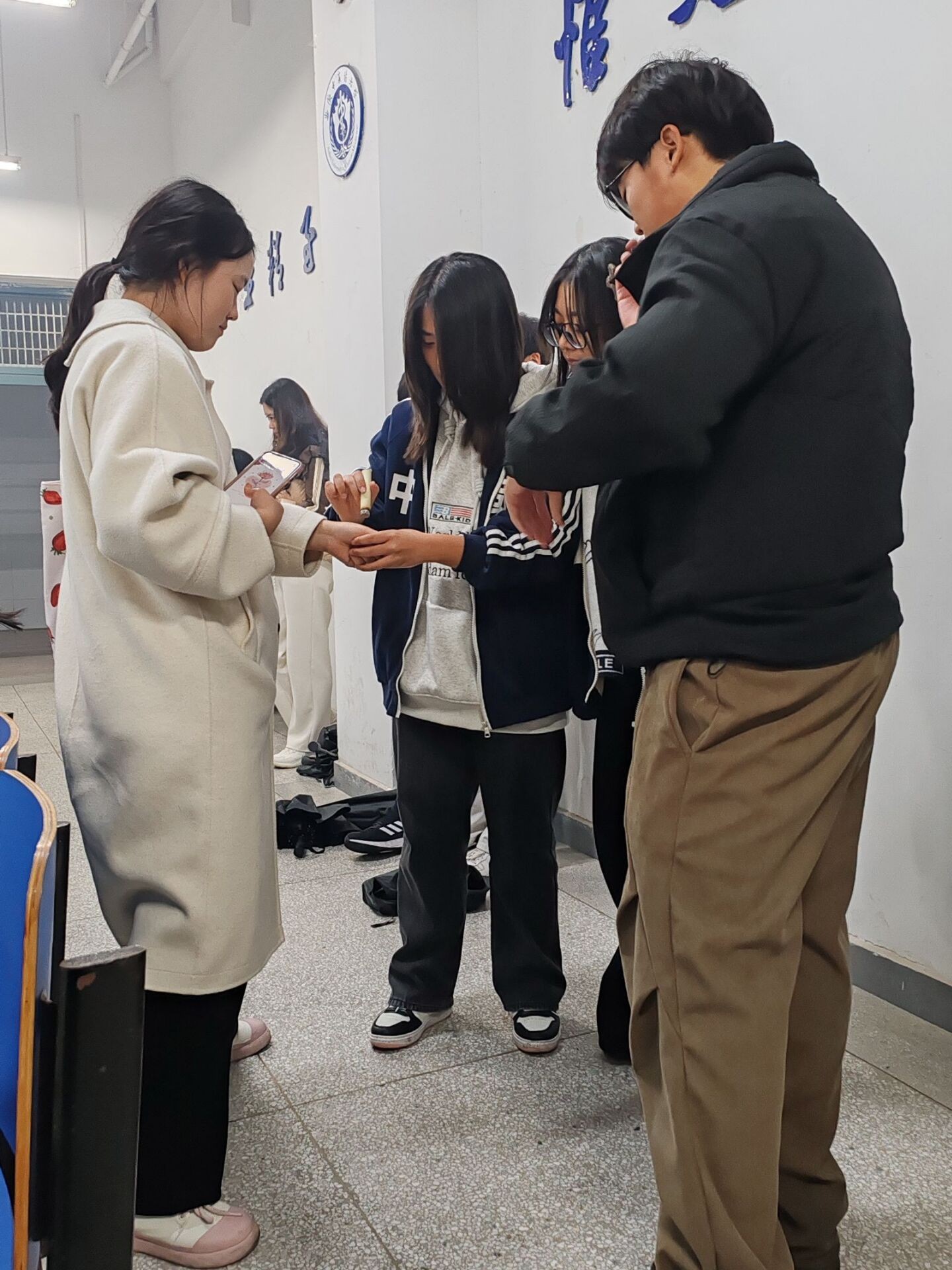 繼而,活動進入實踐操作階段。教室被劃分為多個實操區域,各工作小組明確分工,教學活動有序進行。宣傳部成員奔波于各個區域,記錄下教學的精彩瞬間。教學采用一對多的方式進行,確保每位同學均有機會親自操作各種手法。同學們積極參與,熱情投入地學習和模仿。在實際操作過程中,教師們耐心地解答同學們的疑問,細致地指導操作細節,并對可能遇到的特殊情況進行了預先警示,確保同學們在掌握手法的同時,也能學習到如何安全有效地為他人提供服務。