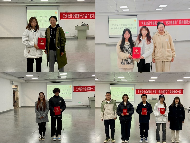 在第十六屆“成才感恩節(jié)”國韻誦讀大賽圓滿落幕之際,藝術設計學部特別增設了頒獎環(huán)節(jié),以表彰優(yōu)秀參賽者。指導老師對活動給予高度評價,并表示將繼續(xù)支持,旨在培養(yǎng)更多傳承中華文化的人才。頒獎典禮上,獲獎者們手持頒獎證書,展現(xiàn)了我校學生對傳統(tǒng)文化的熱愛與尊重。