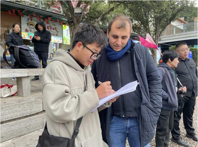 2月9日,團隊來到桂林市標志性景點象鼻山,對入境游客進行問卷調查及隨機訪談。受訪游客紛紛表達了對中國非遺文化的興趣,希望能夠在游覽過程中融入更多非遺體驗活動,如手工藝制作、傳統樂器演奏等。一位來自英國的游客表示:“如果在景區內能直接體驗傳統手工藝或觀看非遺表演,那將是一次非常難忘的旅行。” 此外,團隊通過調查還發現發現部分游客由于語言障礙,難以深入了解當地非遺文化,期待景區能提供更多英語導覽或互動體驗。