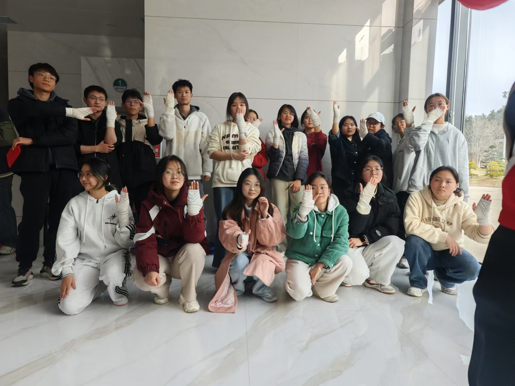圖為同學們展示包扎學習的成果 徐小康 供圖