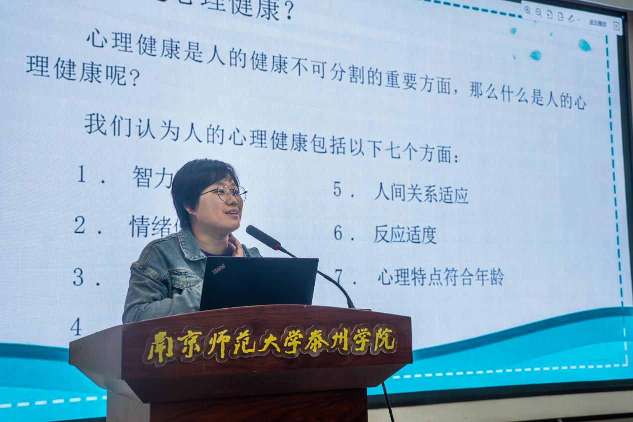 活動伊始,泰州市第五人民醫(yī)院王瑤主任首先強調(diào)了大學生心理健康教育的重要性和緊迫性,并以“智力正常水平的標準”為切入點,結合臨床典型案例,深入分析了大學生群體中普遍存在的學業(yè)壓力、人際沖突以及自我認同困惑等問題。她不僅為同學們提供了科學的心理調(diào)適方法,還傳遞了“心理健康是成長基石”的重要理念。