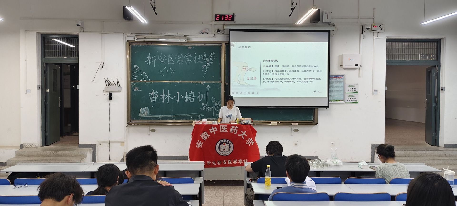 2025年4月9日晚9時20分,安徽中醫藥大學教學樓A區105教室內,一場別開生面的醫學文化培訓活動落下帷幕。大學生新安醫學學社精心策劃與組織的新安“杏林小培訓”順利收官,此次培訓聚焦艾灸知識與技藝,旨在提升同學們對中醫傳統療法的認知,同時增進對新安醫學文化的深度理解。