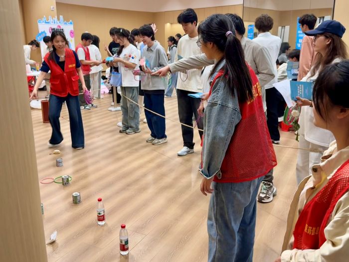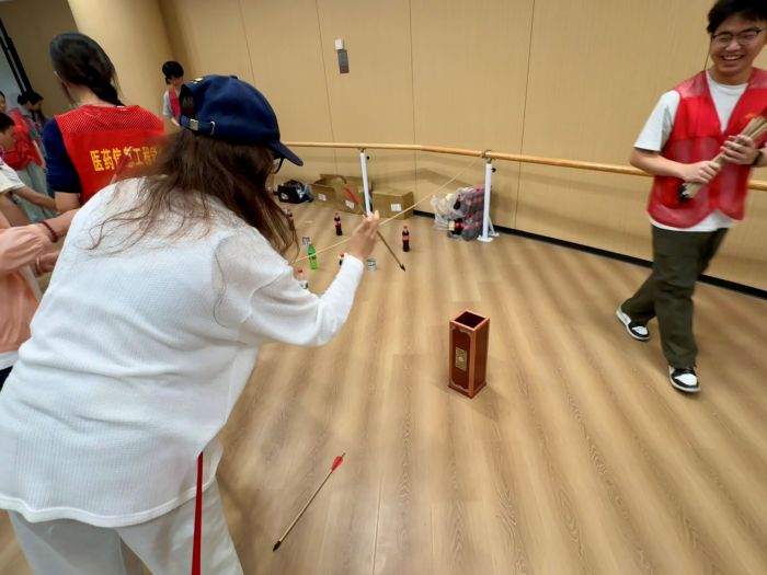 在安徽中醫藥大學的校園里,“投壺現笑·趣味套圈”項目成為了大學生“一站式”岐黃社區2025年心理游園會上一道獨特的風景。這個項目以傳統投壺和套圈游戲為載體,巧妙地融入了中醫藥文化與心理健康教育元素,為師生們帶來了一場充滿歡樂與意義的活動體驗。