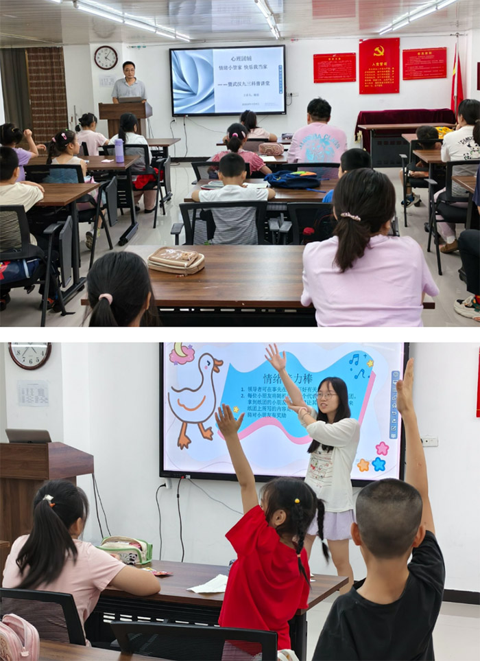 7月7日起,為深耕社區青少年心理健康守護陣地、助力提升孩子們的心理調適能力,江漢大學教育學院“心・光”公益團隊陸續走進經開區金域藍灣社區、硚口區學堂社區及江岸區六合社區的暑期“愛心托管班”,為轄區小學生量身定制并開展了系列心理健康知識科普與能力提升活動。