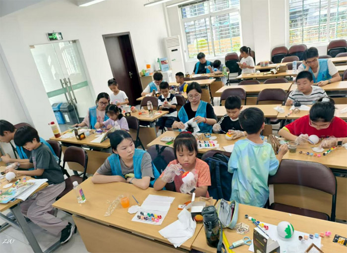 在實(shí)踐中,成員們遵循活動前制定好的義教課程表,分別進(jìn)行了作業(yè)輔導(dǎo),手工活動課程,室內(nèi)外游戲體驗(yàn)及消防安全和安全知識普及教學(xué)。課程內(nèi)手工活動均按照符合所教學(xué)生的年齡以及手工能力所選,每位隊員負(fù)責(zé)一節(jié)手工課程的教學(xué),確保每位成員都有參與到其中。其中還有物理和化學(xué)趣味小實(shí)驗(yàn),讓大家在趣味中汲取新知識。室內(nèi)外游戲課程包含趣味益智游戲以及室外活動如跳繩等趣味體育游戲的開展。7月4日,團(tuán)隊及社區(qū)中心負(fù)責(zé)人帶領(lǐng)孩子們共同來到了麗水市蓮都區(qū)消防大隊邀請消防員對孩子們進(jìn)行消防安全知識普及消防用具講解體驗(yàn)。團(tuán)隊成員在認(rèn)真聽知識普及的同時協(xié)助維持現(xiàn)場秩序,確保孩子們安全有序地學(xué)取知識。