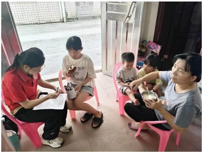 除了課堂教學,志愿者們還利用課余時間開展家訪活動,并同步推進國家助學貸款政策的問卷調查與宣傳工作。他們穿梭在新圩鎮的街巷中,每敲開一扇家門,都開啟一次與孩子心靈的深度對話。通過與家長的細致交流,志愿者們了解孩子們的日常點滴與成長環境,精準捕捉他們未曾言說的需求,以便后續提供更貼合的關懷。