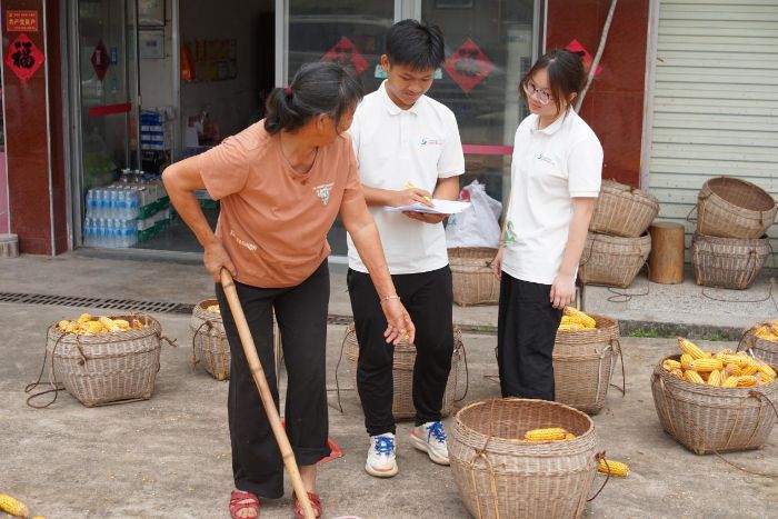 下午4點(diǎn),突擊隊(duì)開啟“鄉(xiāng)間流動(dòng)推普”。走到村東頭一戶院子時(shí),隊(duì)員看到一位老人正打掃玉米——塑料布上攤著曬干的玉米粒,老人持竹掃帚將其歸攏到簸箕里,額頭滲著汗。隊(duì)員立刻上前幫忙,邊歸攏玉米邊拉家常,得知老人買玉米種子常因方言鬧誤會(huì),便教他說(shuō)“玉米種子”“買十斤玉米”的普通話,還在煙盒紙上寫下這些詞:“您揣兜里,沒(méi)事念念就熟了。”