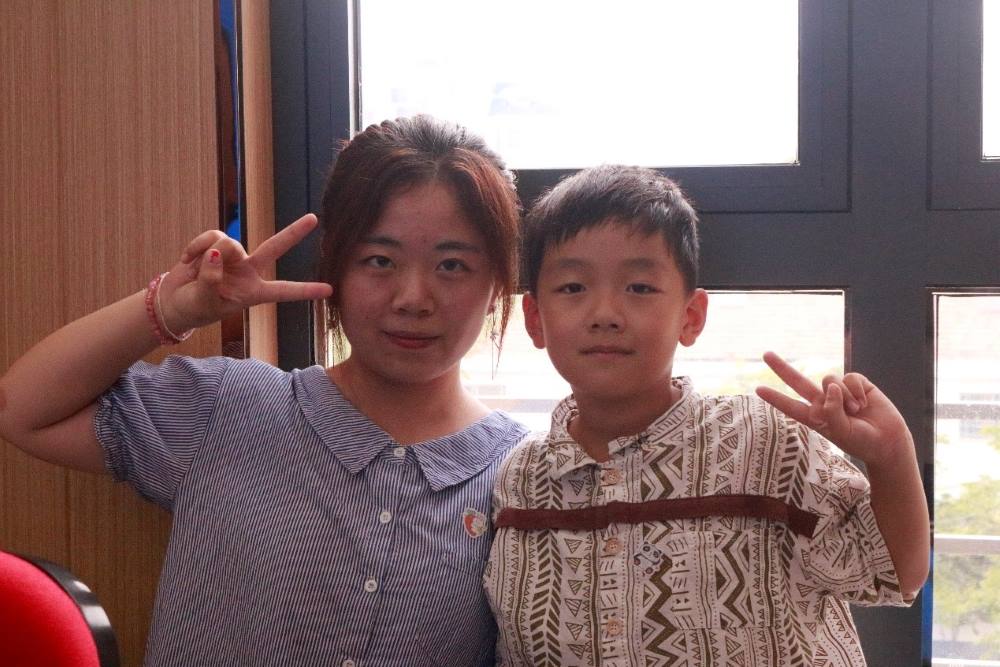 圖為志愿者老師與一位小朋友合影留念。 中國青年網通訊員 任雁飛 攝