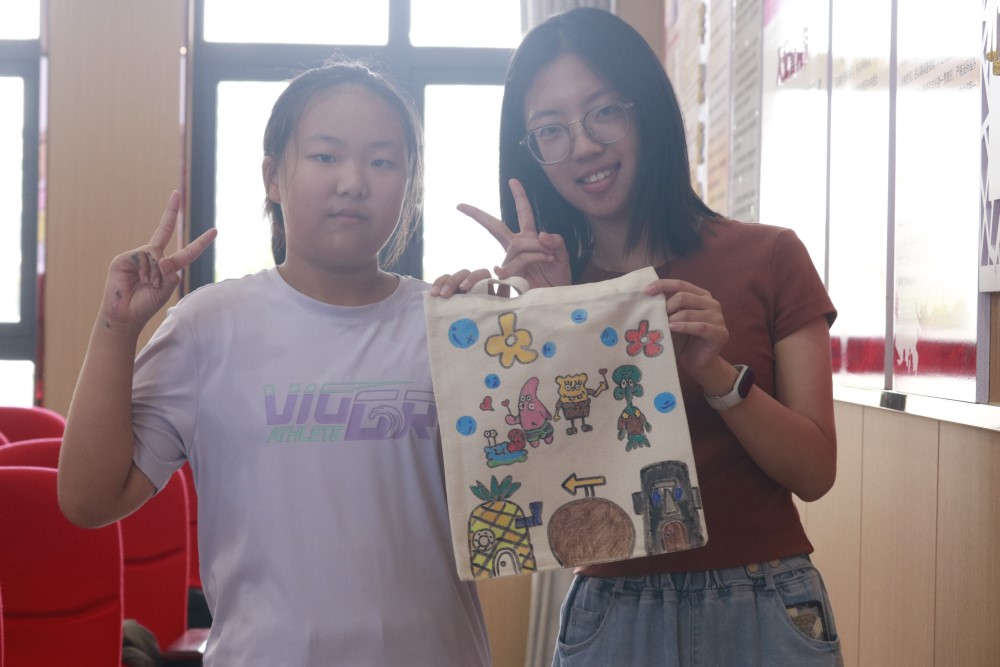 在心理健康課上,思思老師為同學們講解了愛自己的重要性與愛自己的方式,在無形和有形中鼓勵小朋友們都要接受并愛自己。在手工DIY課上,婷婷老師通過七色花的故事引導小朋友們說出自己的愿望,接著小朋友們將自己的想法用彩筆表達在帆布包上。一支支普通的彩筆,勾畫出小朋友們腦海中獨特有燦爛的童話世界。